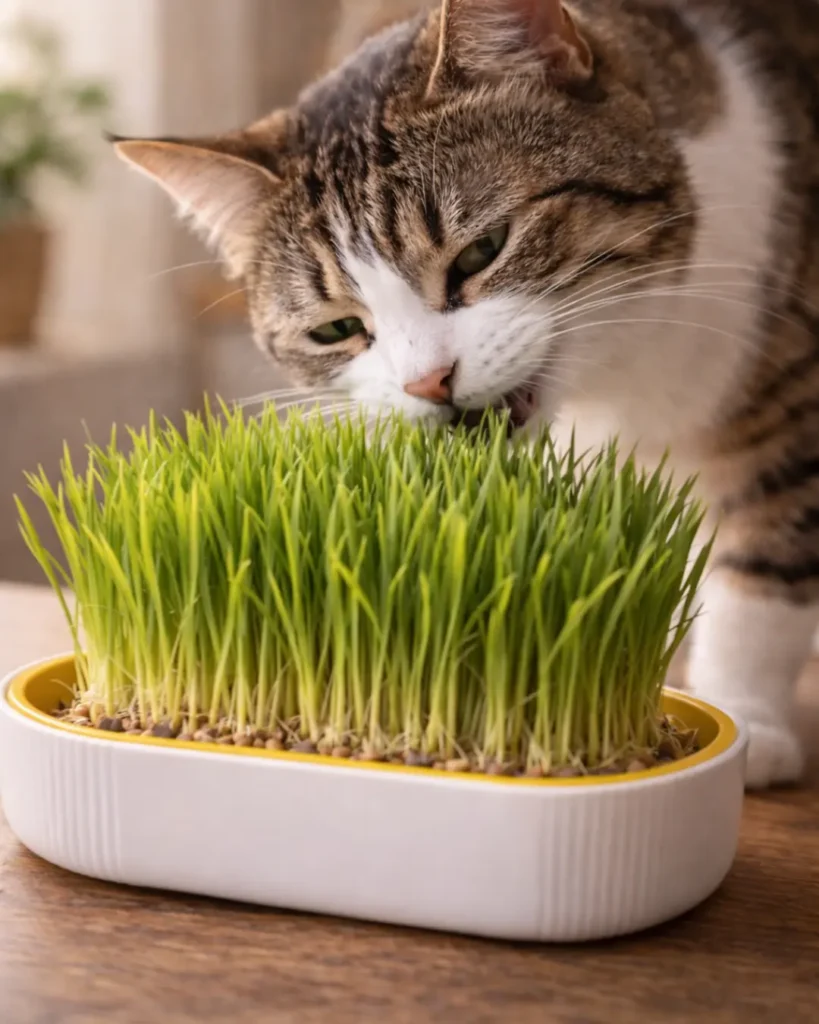 Un kit simple pour cultiver de l’herbe à chat à la maison, sans terre, dans un environnement propre et adapté à l’intérieur.