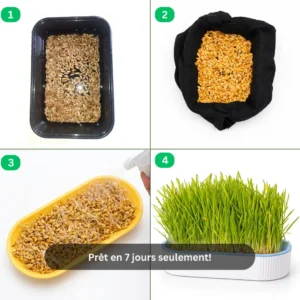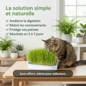 Offre-lui une solution naturelle (l’herbe d’orge) en 7 jours pour améliorer sa digestion, réduire les vomissements et protéger tes plantes.